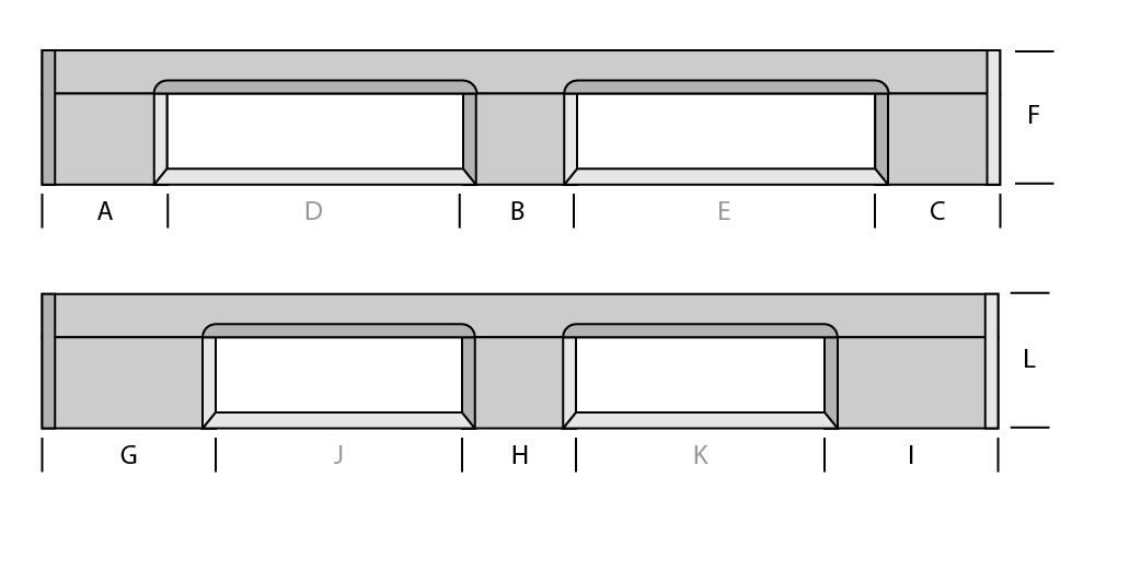 Palet plástico 1100 x 1100 abierta 6 patines medium